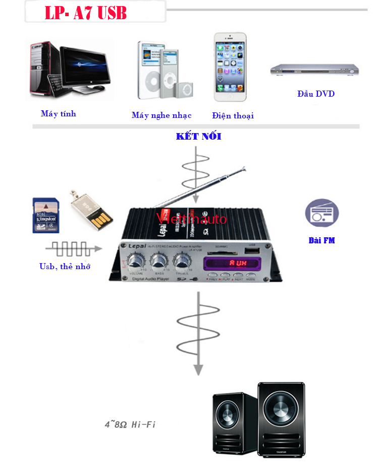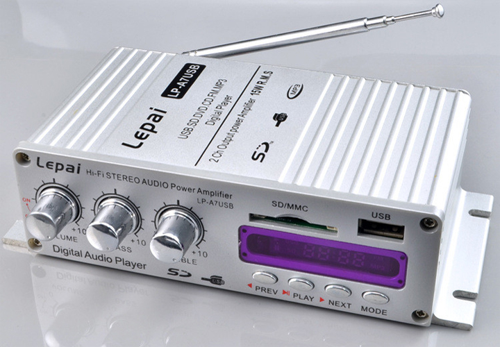 * Ampli Mini 12V nghe nhạc nghe đài FM đa năng LP-A7 USB- Kèm nguồn
