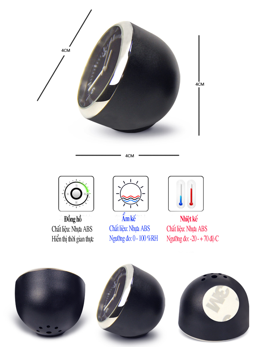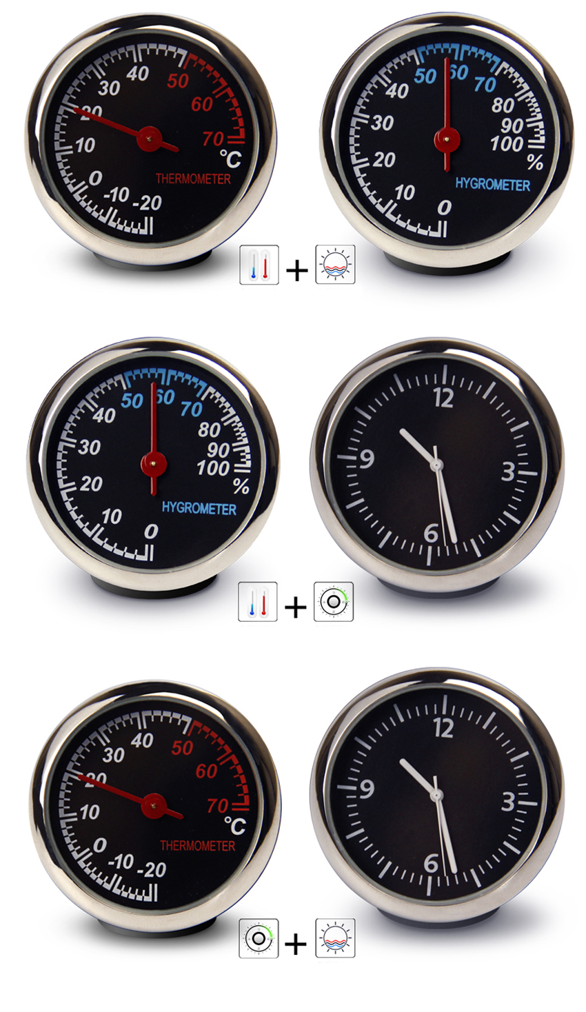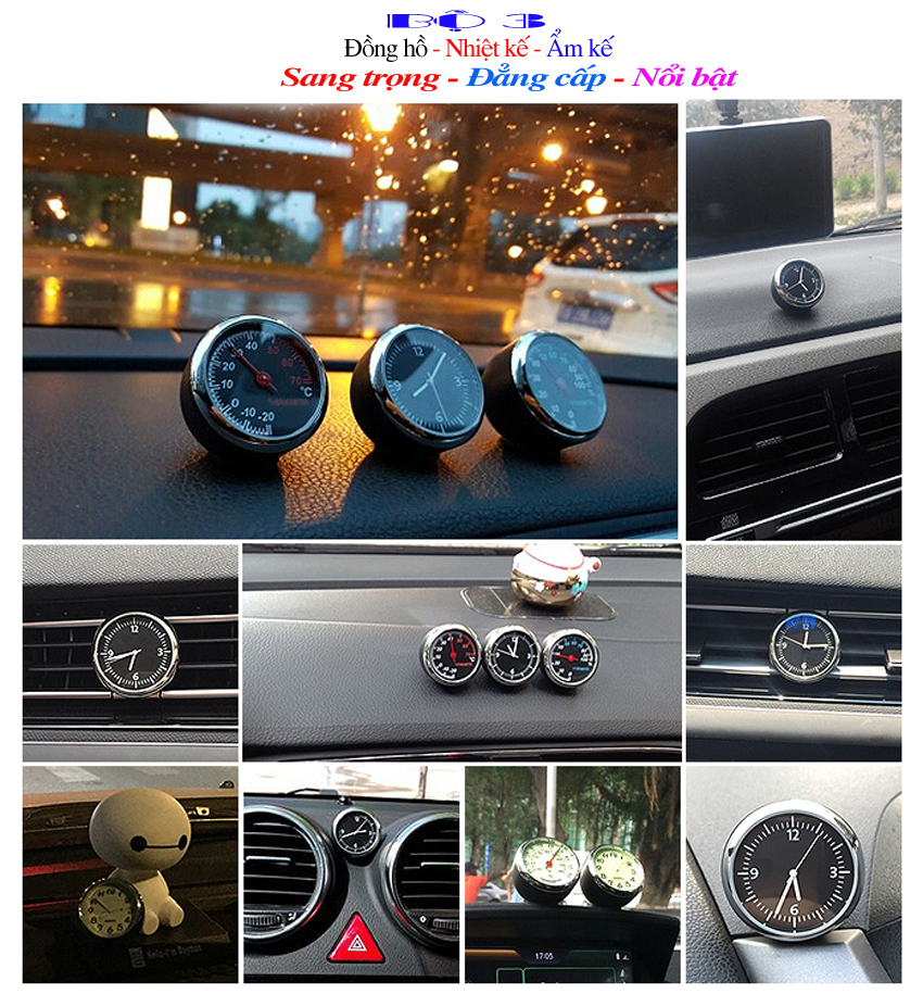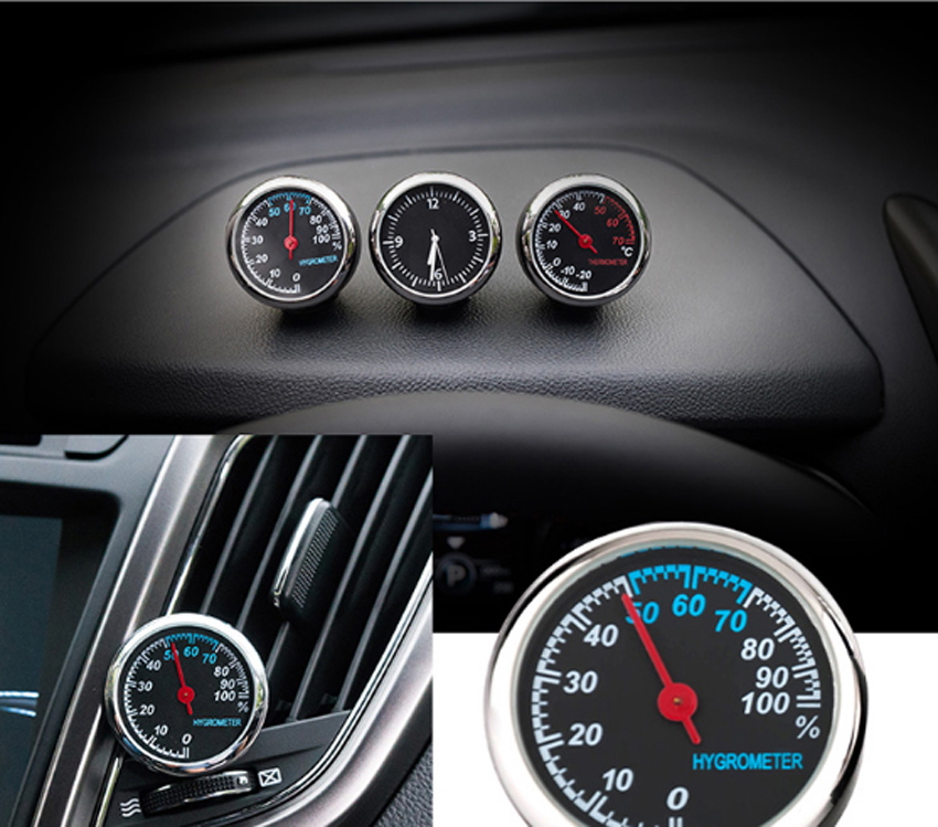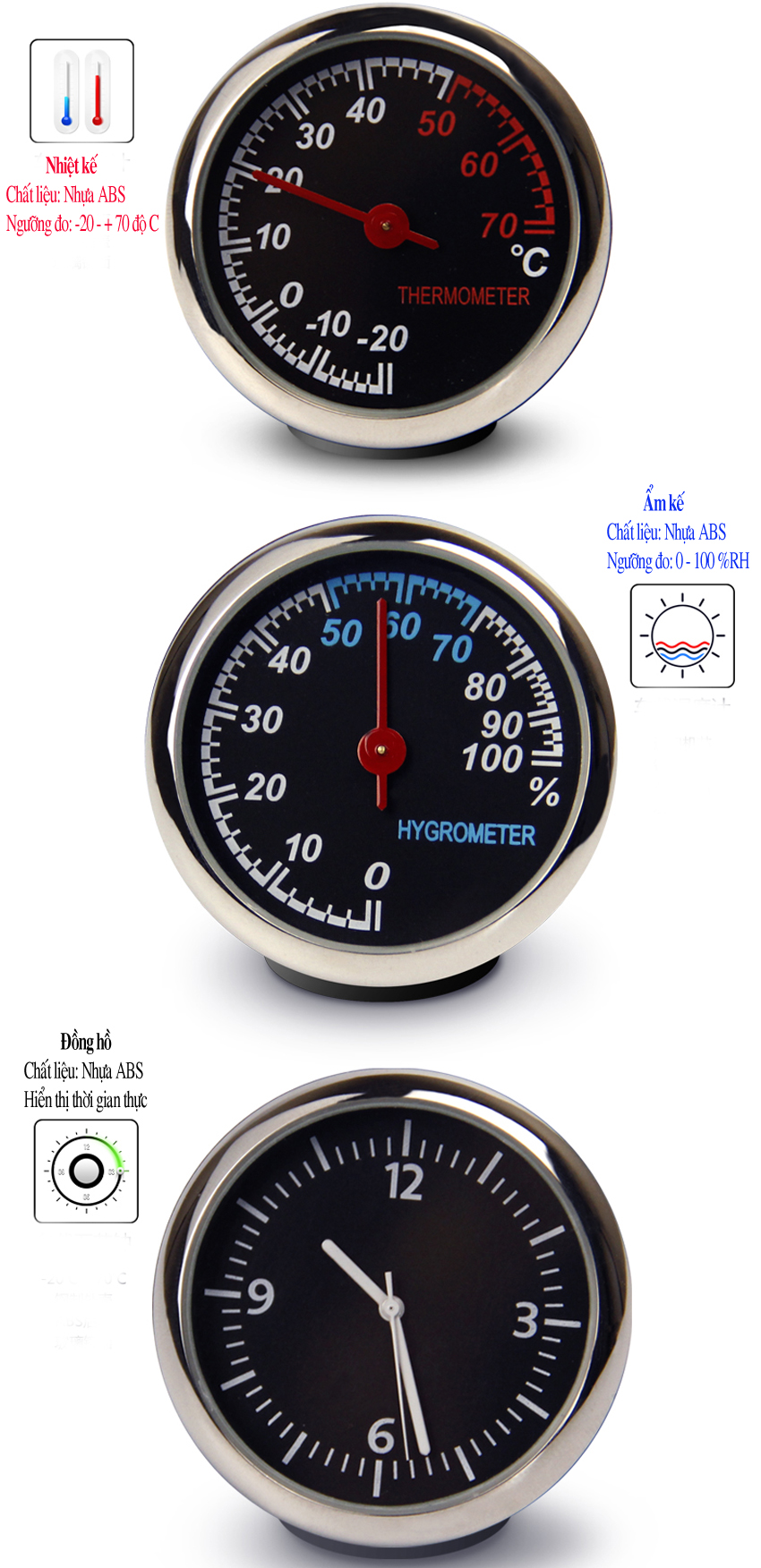 Tên sản phẩm:Bộ 3 Đồng hồ nhiệt kế ẩm kế trang trí xe hơi