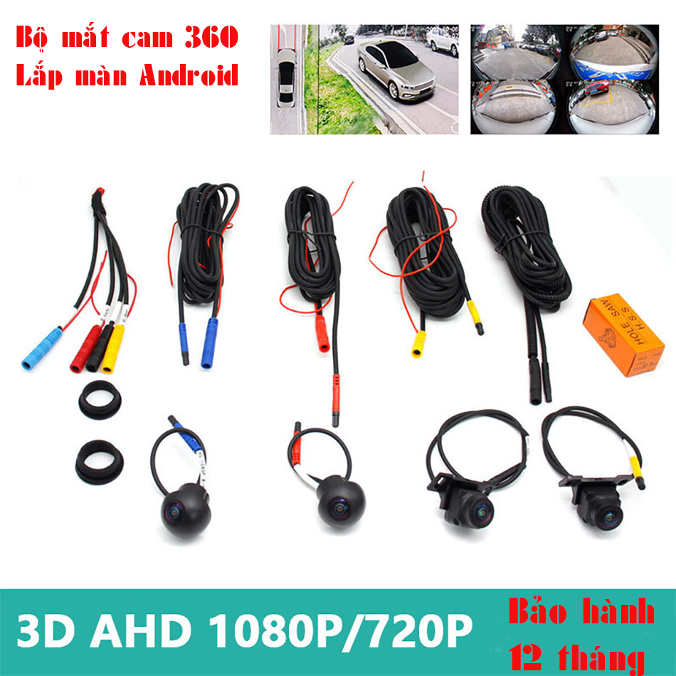 Bộ 4 mắt camera 360 chuẩn hình ảnh AHD 1080P/720P lắp cho màn Android 360