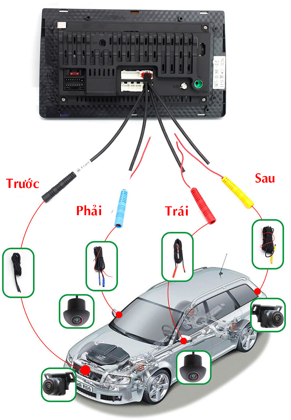 Lưu ý: Bộ mắt cam chỉ tương thích phù hợp với màn hình Android có hỗ trợ chức năng lắp cam 360.