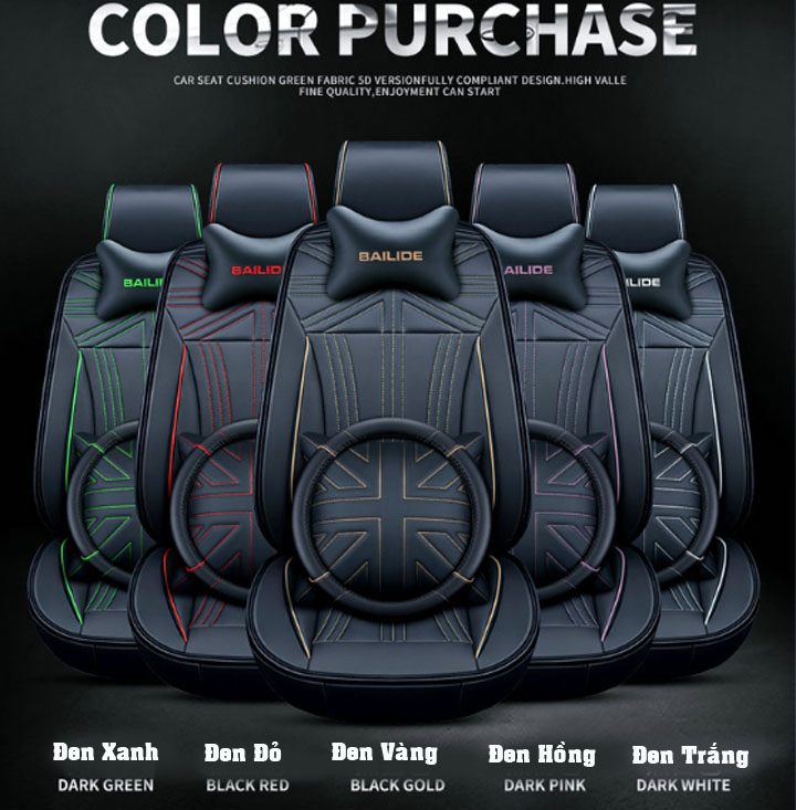Bộ sản phẩm gồm: 02 Áo ghế trước, Áo ghế sau, 02 gối tựa đầu, 02 gối tựa lưng, Bọc vô lăng...
