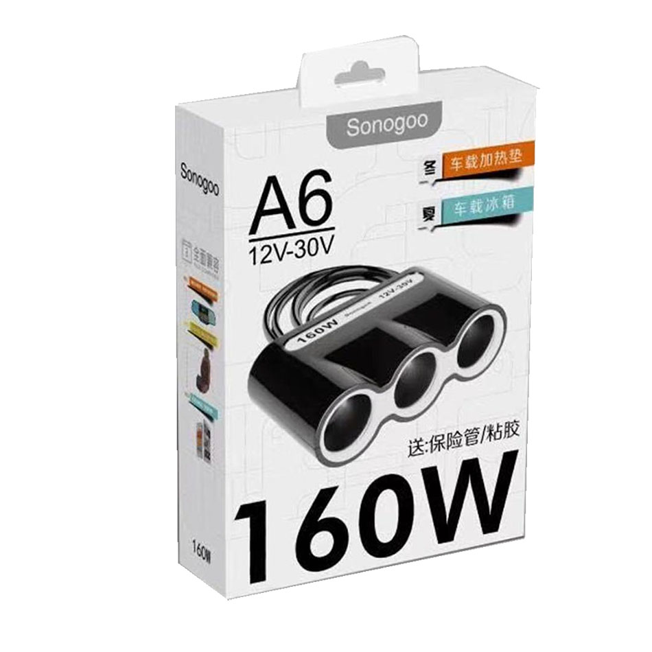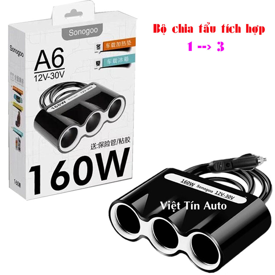 - Bộ chia tẩu 3 cổng , bộ chia tẩu sonogoo A6 160W là thiết bị giúp Anh, chị chia cổng tẩu trên Ô tô từ 1 cổng thành 3 cổng tẩu.
