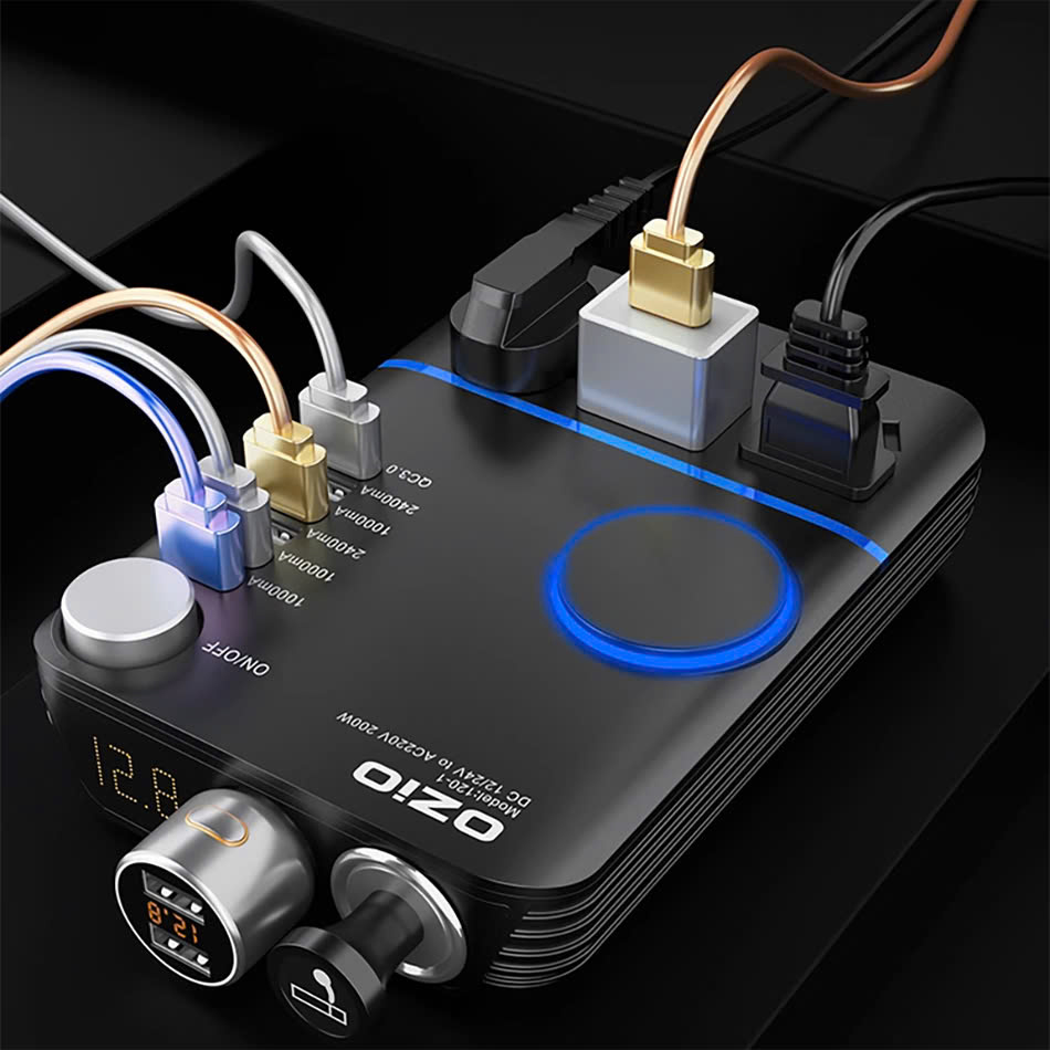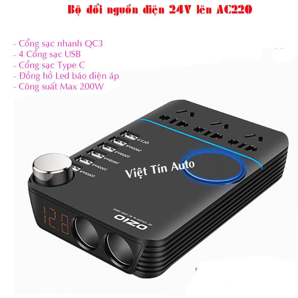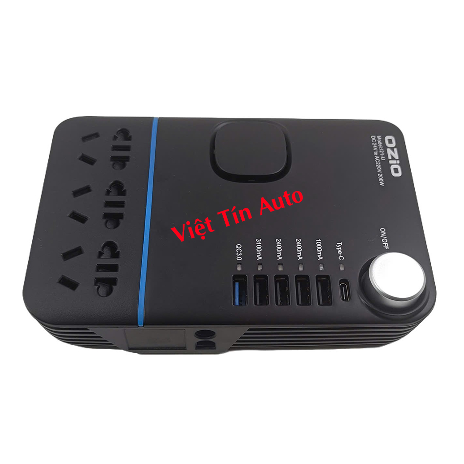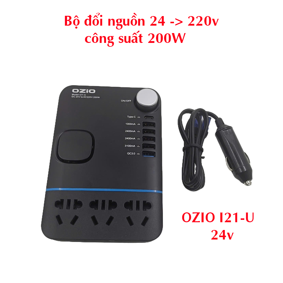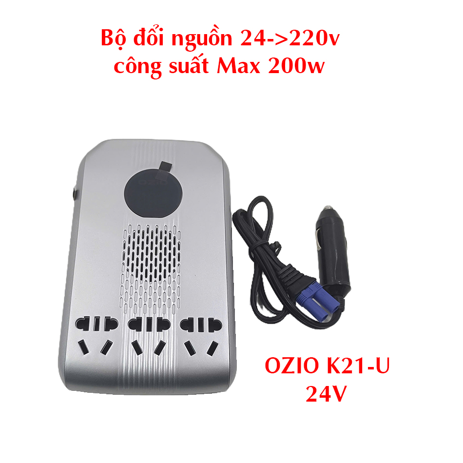 Bộ đổi nguồn 24V  lên AC 220V  200W, Kích điện 24V lên 220V- Mẫu OZIO hay còn gọi là Bộ kích điện AKS9005  dùng để biến đổi điện áp 1 chiều từ acquy (điện áp DC) thành điện áp AC 220v dùng cho thiết bị điện dân dụng như laptop, thiết bị âm thanh ….