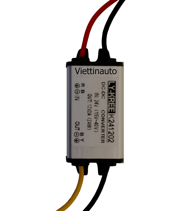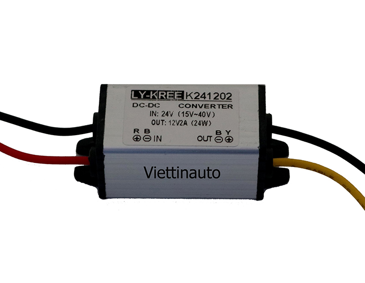 - Bộ đổi nguồn DC 24V sang DC 12V cho Ô tô:Là bộ adapter chuyển đổi điện áp 1 chiều DC24V xuống dòng điện 1 chiều DC12v -2A chuyên dụng dành riêng cho Ô tô.