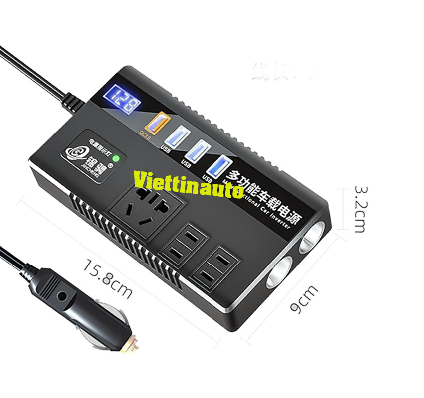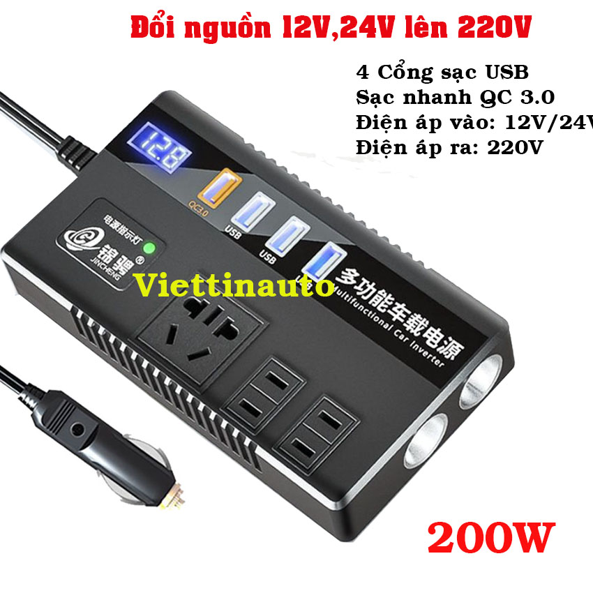 Bộ chuyển nguồn Dc12V/24V lên AC 220V- 200W sử dụng trên ô tô KĐ01 hay còn gọi là Bộ kích điện AKS9005 dùng để biến đổi điện áp 1 chiều từ acquy (điện áp DC) thành điện áp AC 220v dùng cho thiết bị điện dân dụng như laptop, thiết bị âm thanh ….