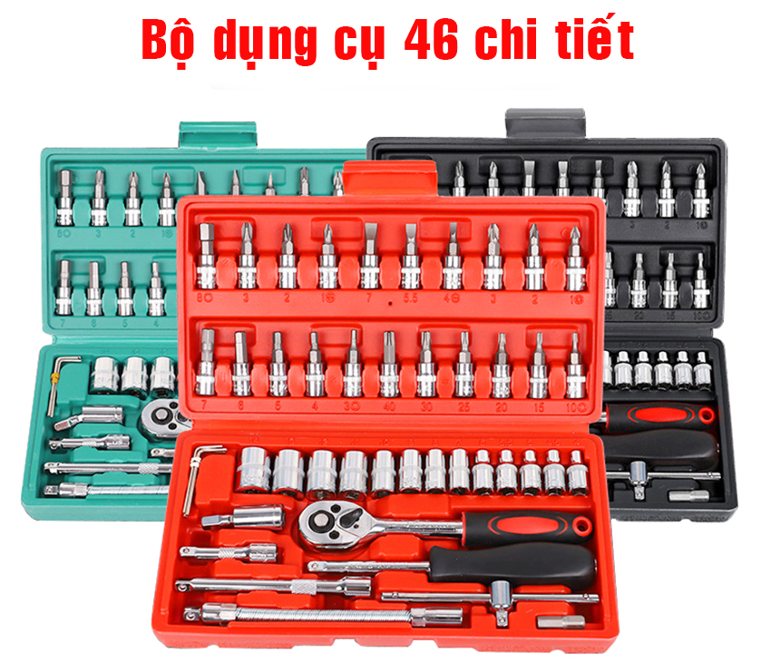 - Bộ dụng cụ 46 chi tiết sẽ là dụng cụ hữu ích giúp bạn sửa xe máy , xe đạp , ô tô hay trang trí sửa chữa ngôi nhà của bạn một cách nhanh chóng và tiện lợi