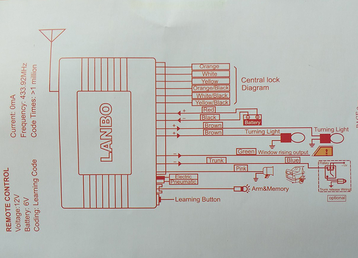 Hệ thống khóa điều khiển từ xa với đèn báo nhấp nháy