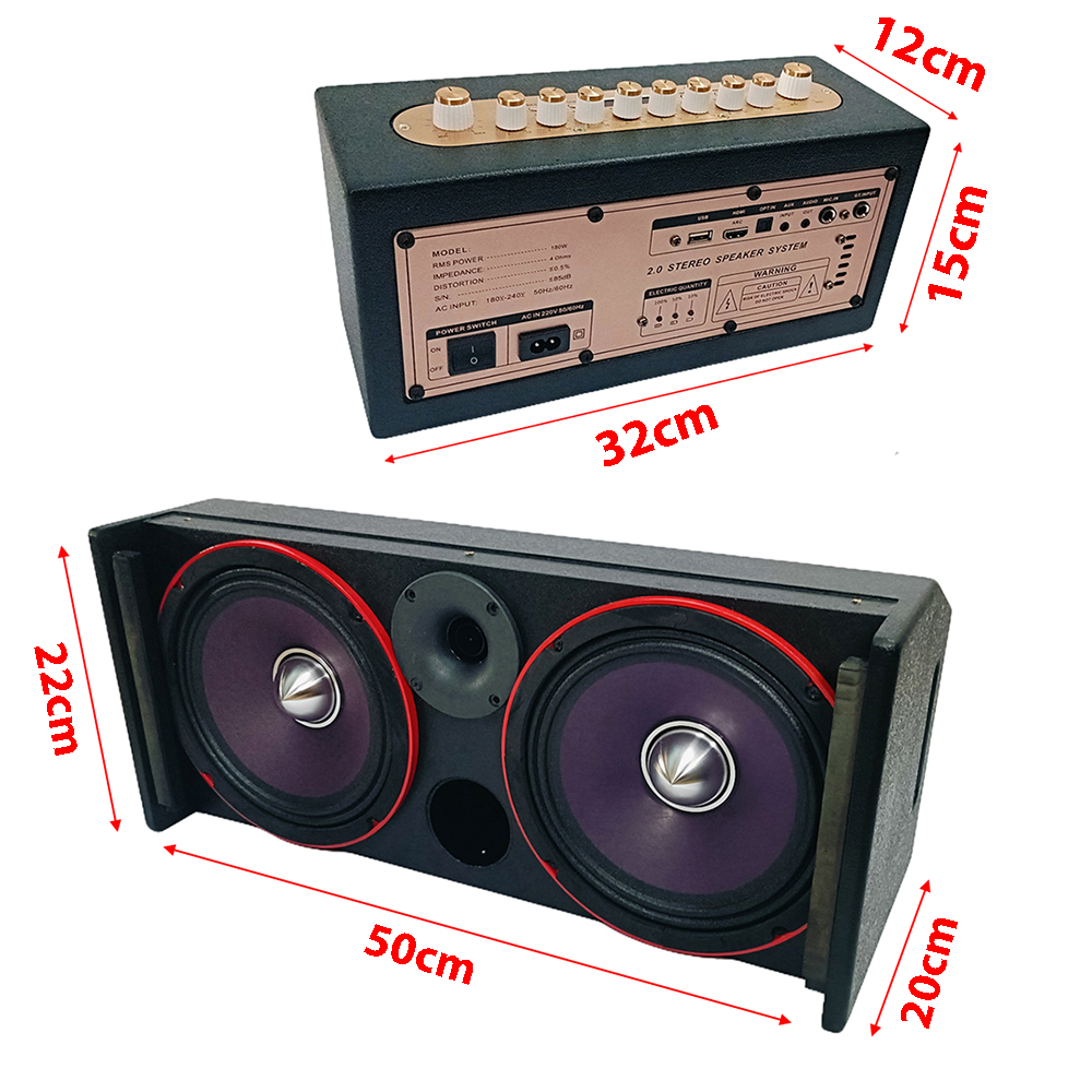 Đường kính loa Bass 2: 8 Inc (20cm)