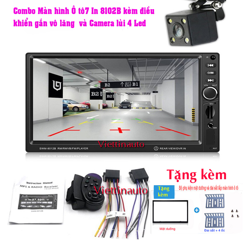 Bộ Màn hình Ô tô giá rẻ 7 In kèm điều khiển gắn vô lăng 8012B Và Camera lùi 4 Led