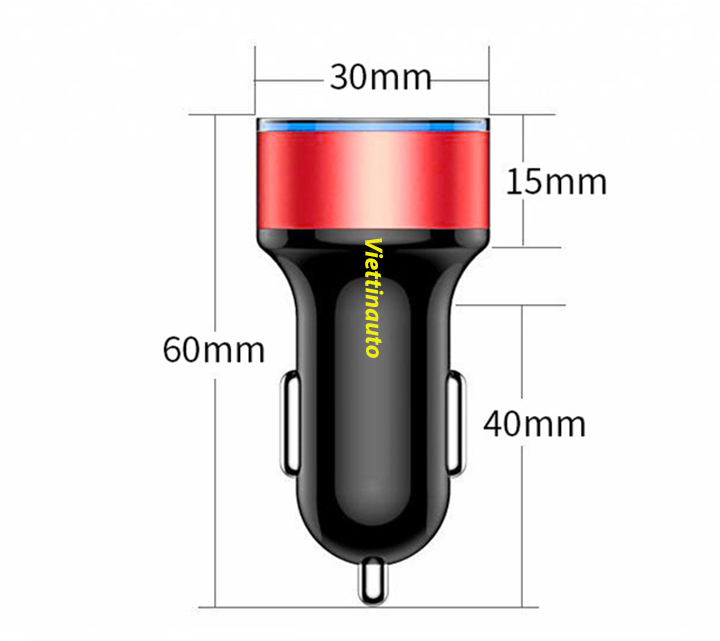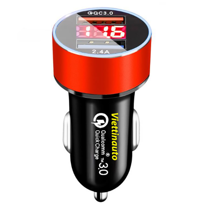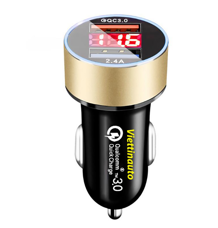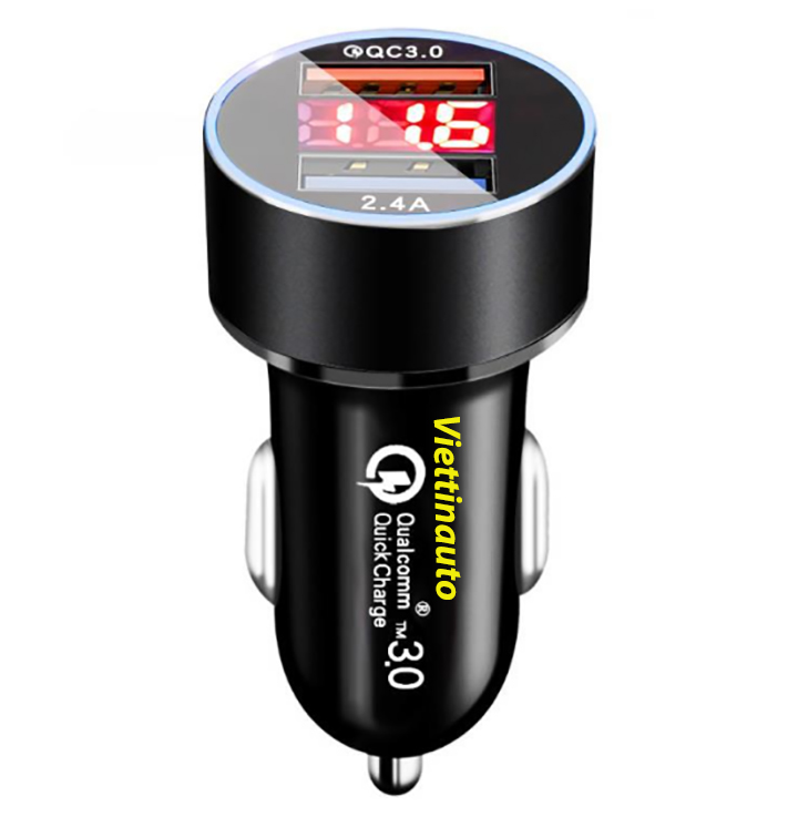 - Bộ sạc ô tô sạc nhanh QC3.0 Màn hình LCD hiển thị điện áp 2 cổng USB 2.4A