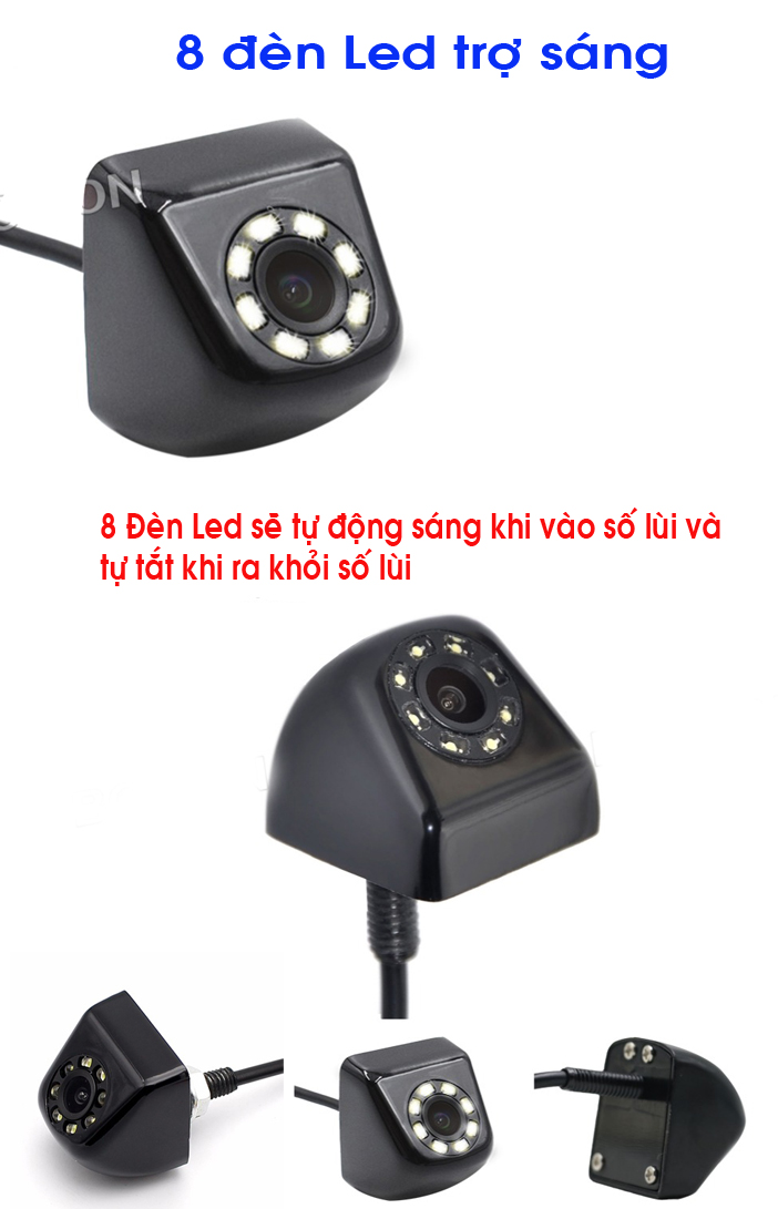 Camera lùi chống nước 8 đèn LED cho hình ảnh rõ nét cả ban ngày và band đêm.