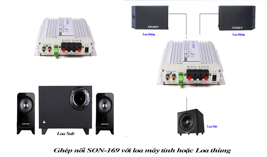 Sử dụng bộ Ampli Mini 12V Hifi 2.1 độ xe SON-169 này độ lại hệ thống âm thanh trên Xế hộp, các loại xe tải bạn sẽ thực sự bất ngờ với với một mức chi phí rẻ mà kết quả lại vượt qúa mong đợi.