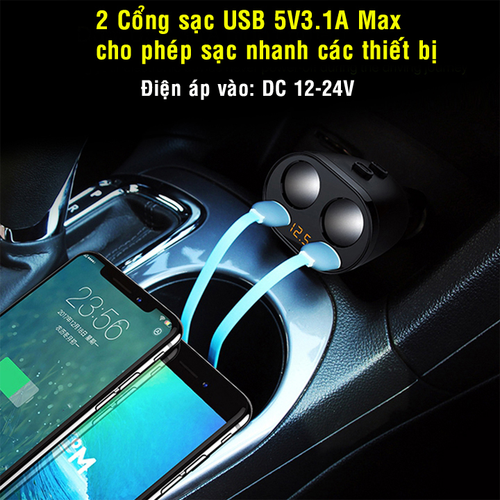 - Gồm 2 tẩu nguồn và 2 cổng sạc usb 5V3.1A (Max)