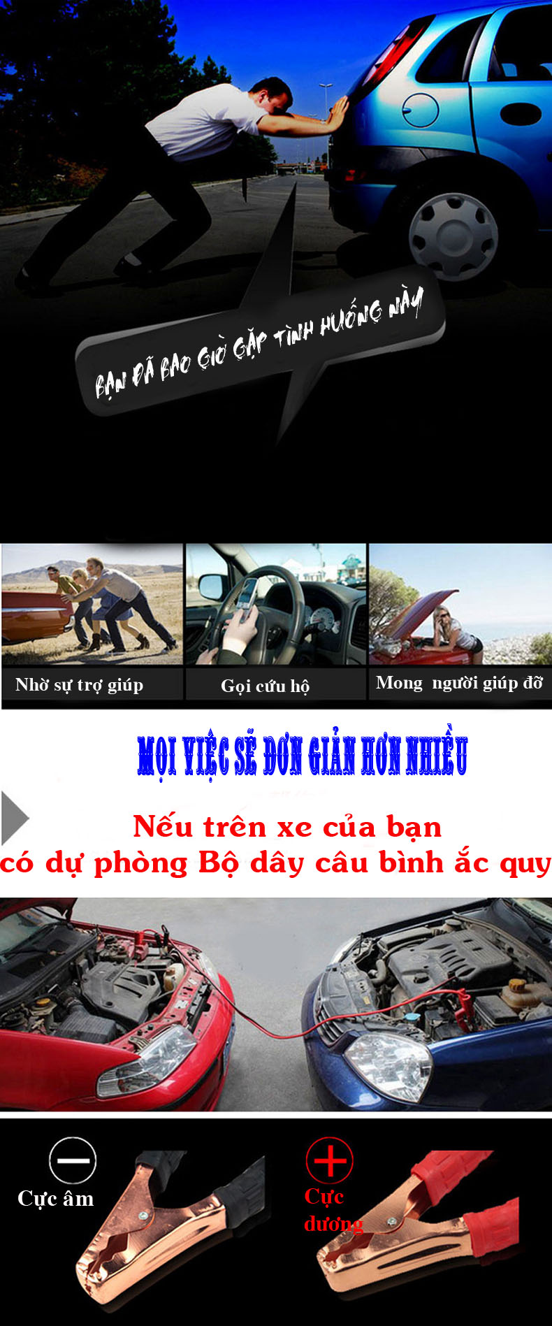 - Nếu xe không có Bộ dây câu bình ắc quy thì phải vẫy xe lại hỏi nhờ câu bình, vì vậy cần thiết phải trang bị cáp mồi.