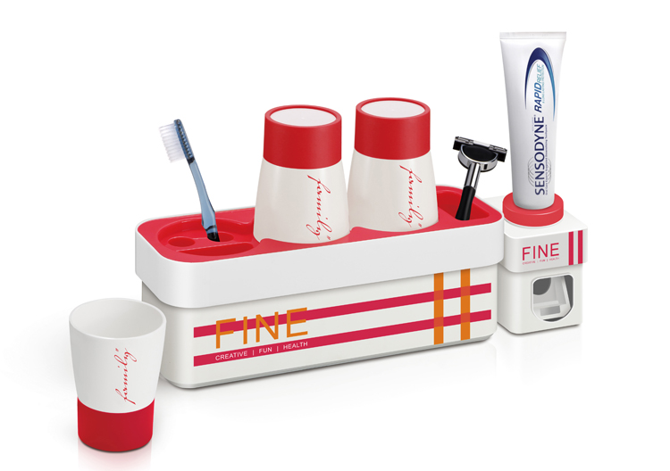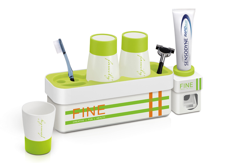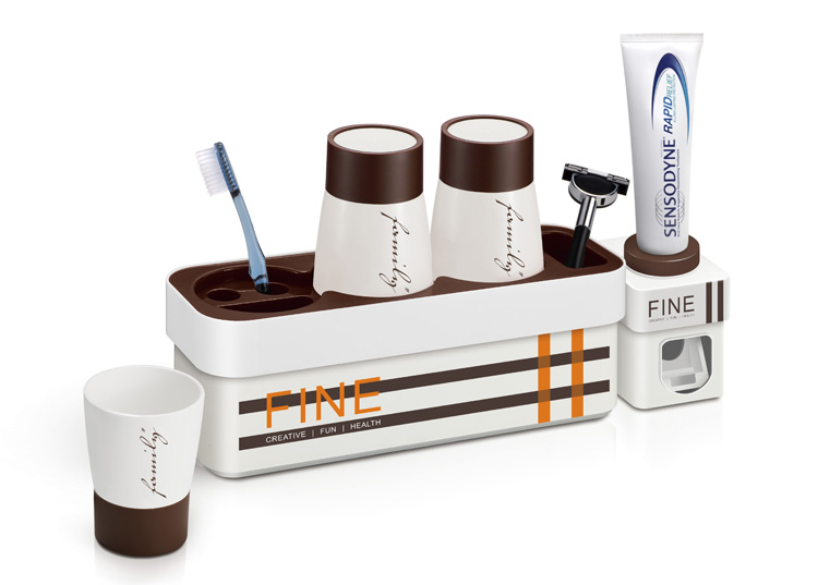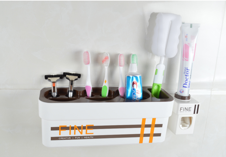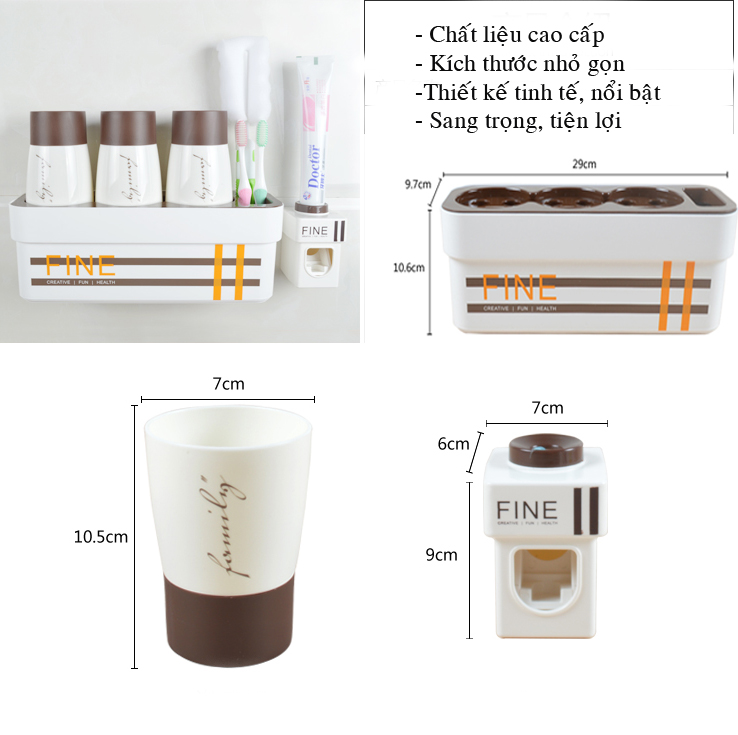Bộ sản phẩm gồm: Dụng cụ nhả kem tự động + khay đựng đồ, giá để bàn Chải & 3 Cốc