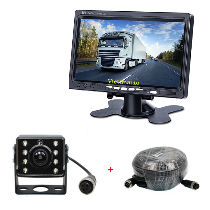 Tên sản phẩm: Bộ màn hình 7 In gắn taplo và Cam lùi 8 Led kèm tẩu nguồn dây 15M chuẩn hàng không 4 Pin ren xoắn