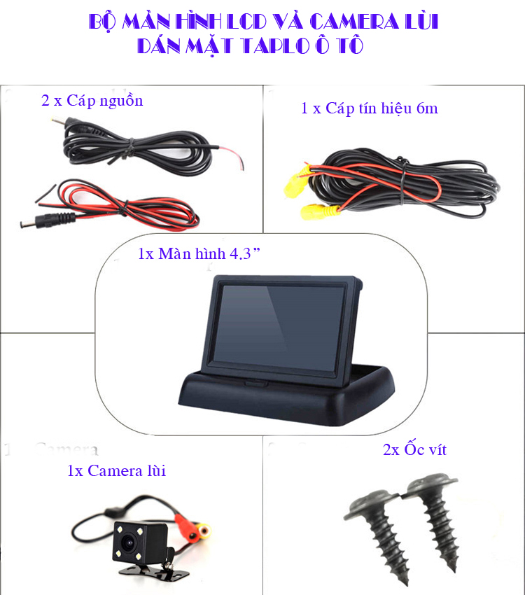 Tên sản phẩm: Bộ màn hình LCD 4.3" và Camera lùi 4 Led siêu nét cho Ô tô BSJ-4062