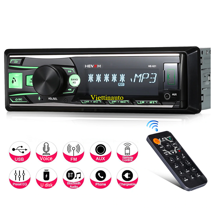 Đài FM xe hơi kiêm máy nghe nhạc Mp3 chạy điện 12V HE-521 là dòng máy cao cấp, với nhiều tính năng và ưu điểm