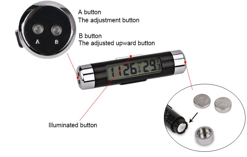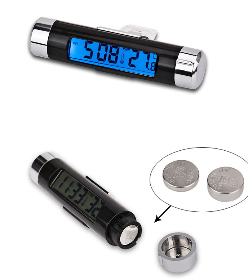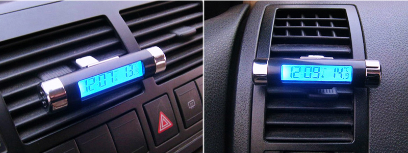 Đồng hồ kiêm nhiệt kế kẹp cửa gió ô tô thông báo thời gian và nhiệt độ trên ô tô bằng số điện tử màn hình, dễ dàng quan sát và nắm bắt thông tin