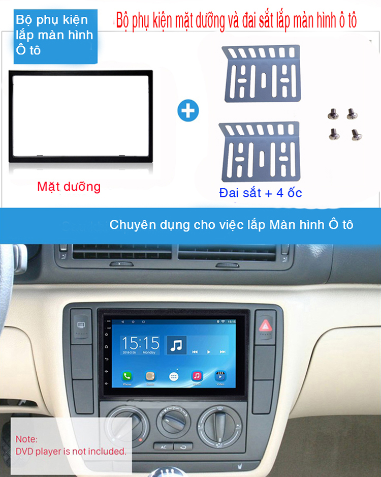 Tên sản phẩm: Bộ phụ kiện mặt dưỡng và đai sắt kèm 4 Ốc lắp màn hình Ô tô