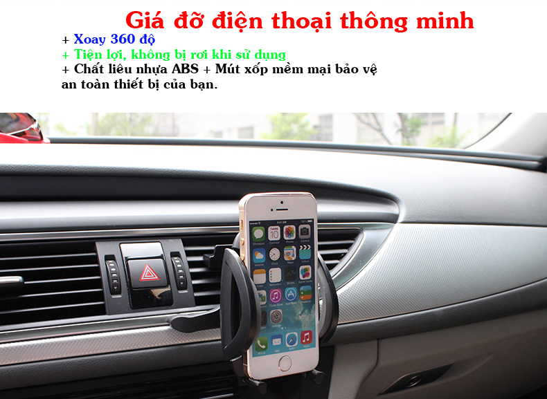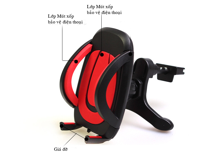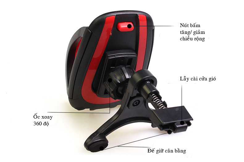 - Sản phẩm bao gồm: Chân đế cài cửa gió, khung đỡ điện thoại và trục quay