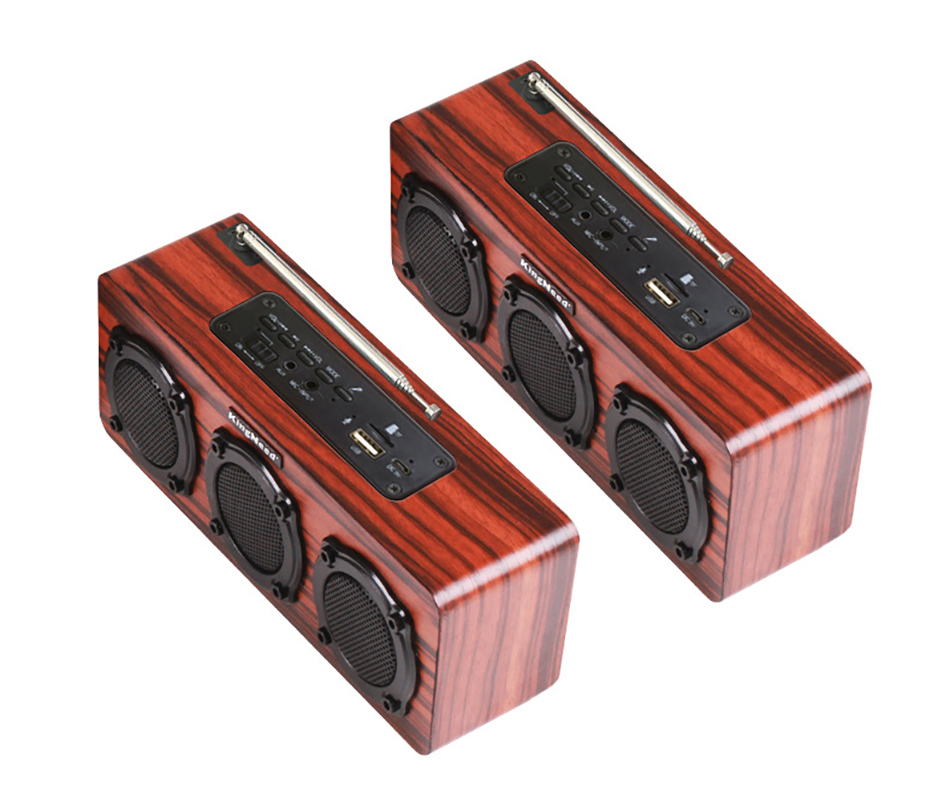 Máy nghe nhạc Bluetooth, đài FM loa bluetooth không dây vân gỗ đa năng Kingneed