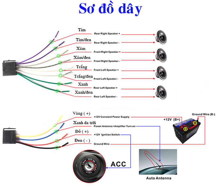 - Điện áp sử dụng DC12V ( thông thường là xe có 1 bình ắc quy)