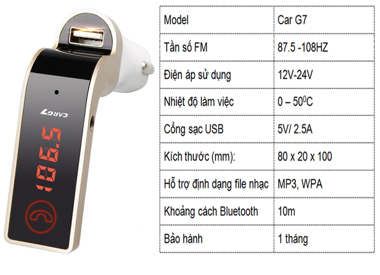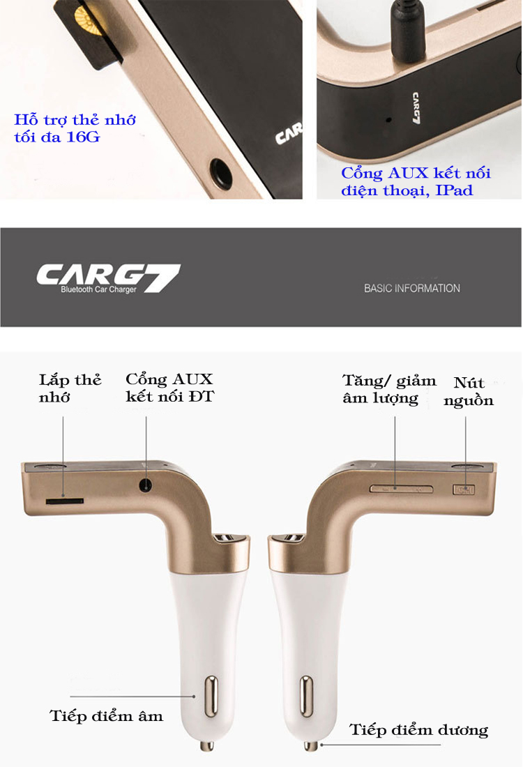 Hỗ trợ kết nối nghe nhạc qua cổng USB ( cắm USB vào Car G7)