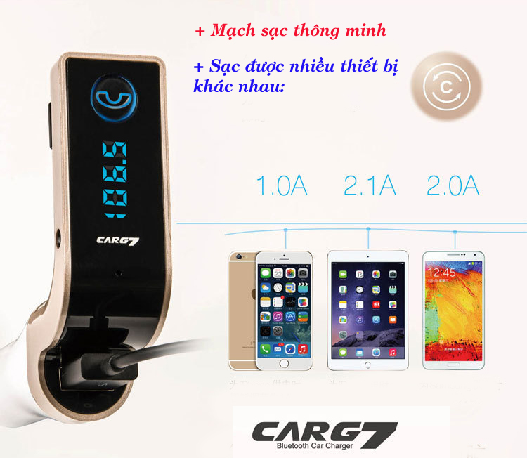 CAR G7 Bluetooth Car Changer một thiết bị sạc hiện đại giúp smartphone, iPhone kết nối không dây với hệ thống loa trên xe hơi qua cổng AUX.