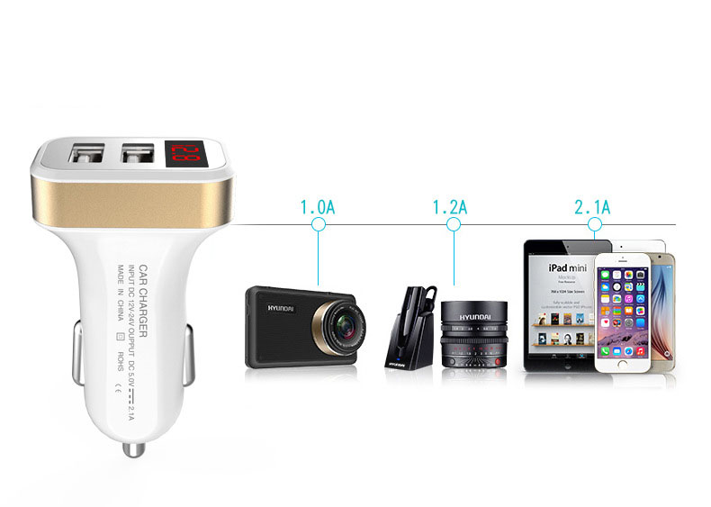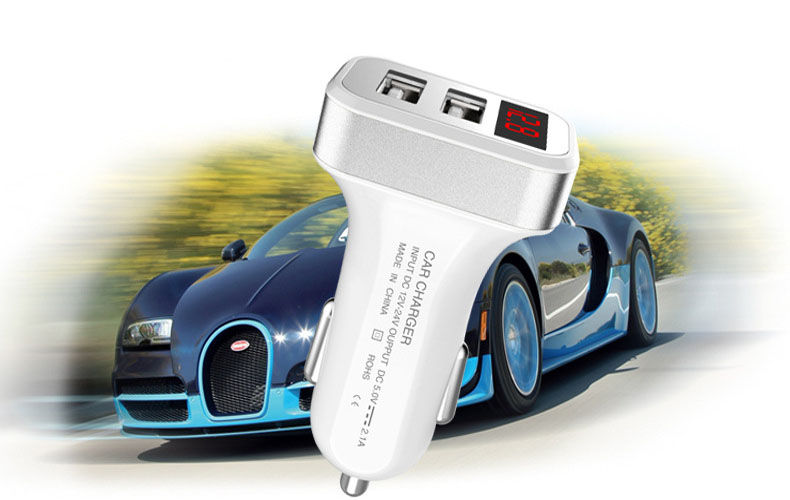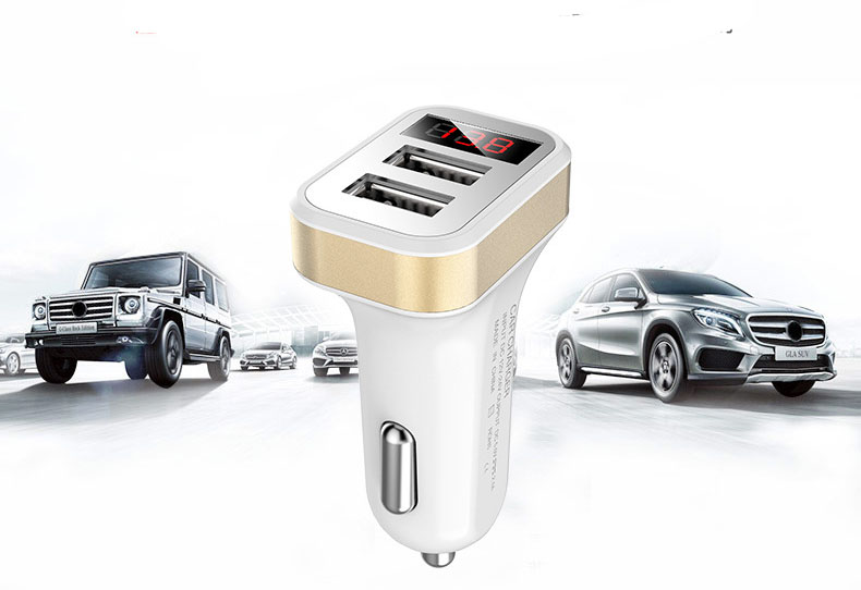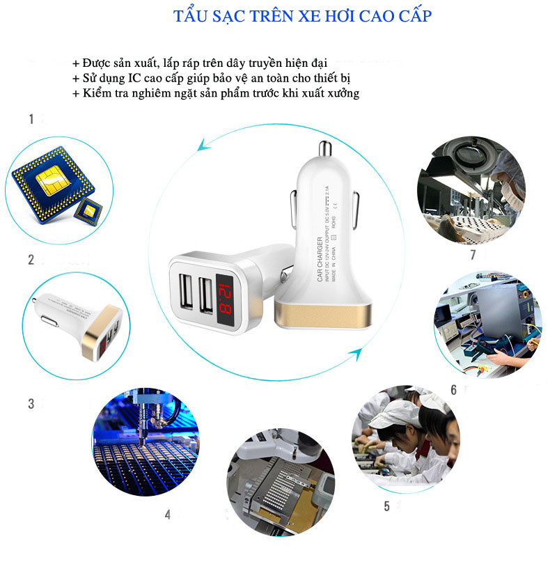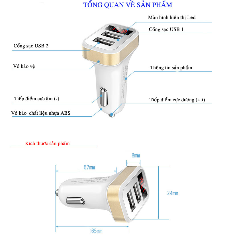 - Tẩu sạc xe hơi thông minh cao cấp 5V 2.1A sạc thông minh kết hợp Sạc Nhanh tích hợp 2 Cổng sạc USB hiển màn hình Led
