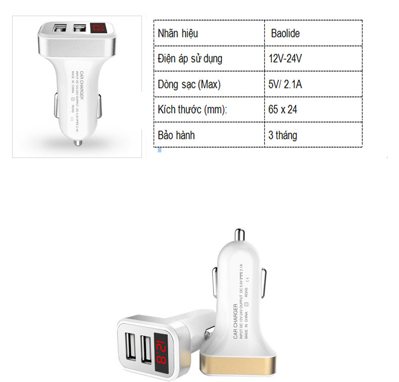 - Tích hợp màn hình LED thông báo điện áp Ắc-quy xe và dòng sạc thiết bị (Car Charger).