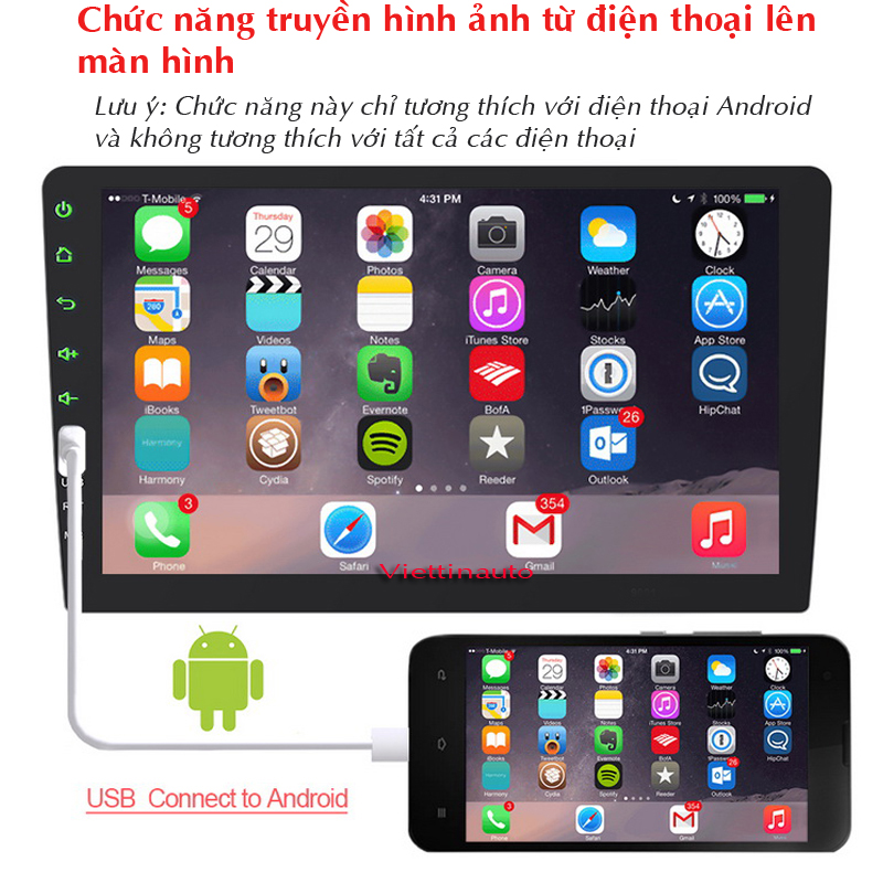* Hỗ trợ chức năng truyền hình ảnh từ điện thoại lên màn hình Mirror link (Lưu ý:Chức năng này chỉ hỗ trợ với điện thoại Android, và không tương thích với tất cả các điện thoại)