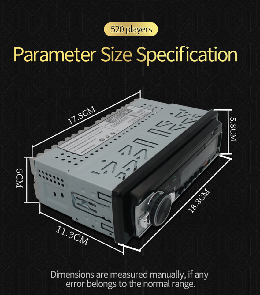 - Tên sản phẩm:Máy nghe nhạc Mp3 xe hơi đài FM hỗ trợ Bluetooth JSD-520 ISO