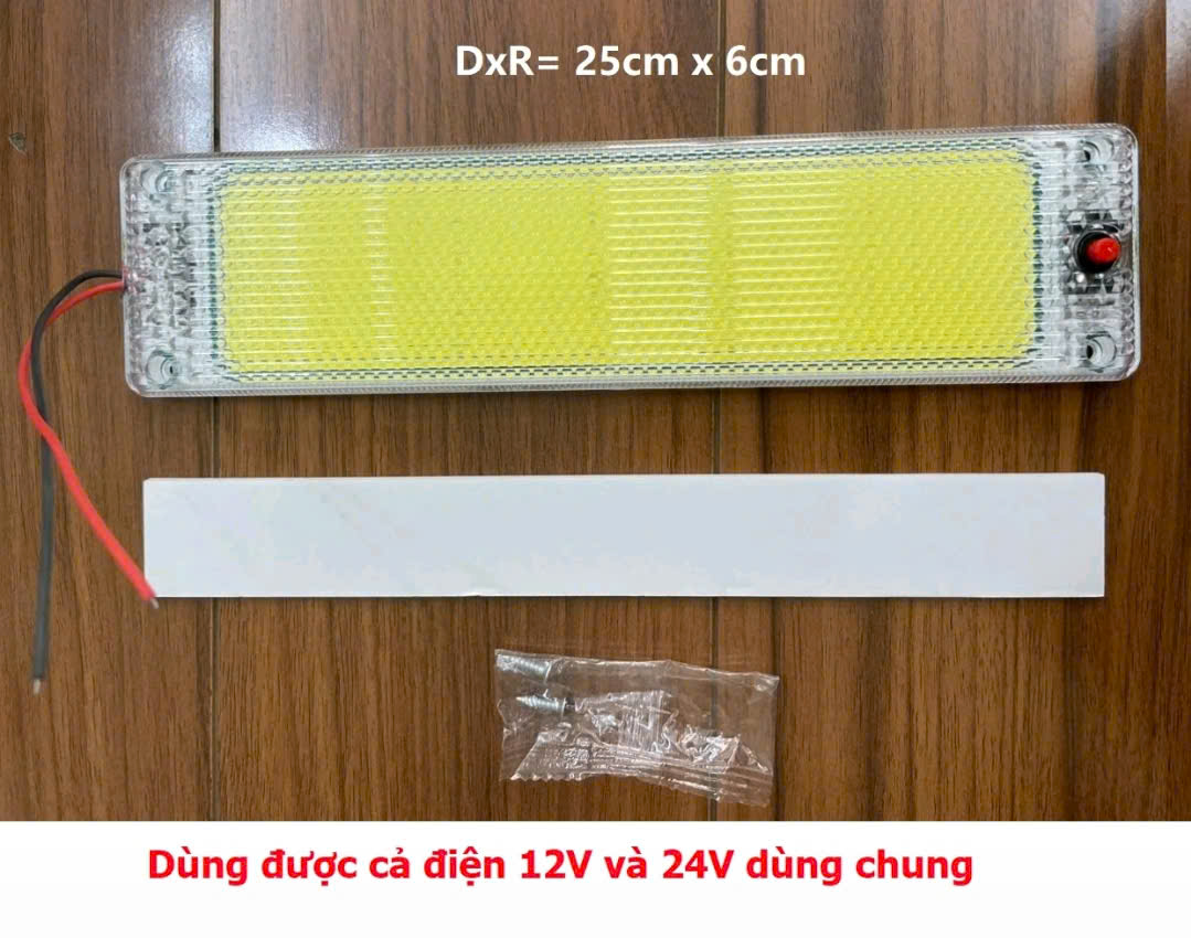 Chi tiết về sản phẩm Đèn LED COB siêu sáng dùng cho cabin và thùng xe tải, hoạt động đa điện áp 12V-24V (thậm chí lên đến 85V), có kích thước 25cm x 6cm (loại mỏng/dày) tích hợp công tắc, thiết kế chịu lực, dễ lắp đặt với dây nối chung điện áp, tiện lợi cho việc chiếu sáng nội thất xe. Sản phẩm có chất lượng cao, tiết kiệm điện, tặng kèm ốc vít, phù hợp lắp đặt cho nhiều loại xe tải và ô tô, giúp tăng tầm nhìn và độ an toàn.