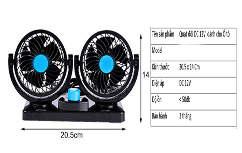 - Quạt đôi DC 12V cho dành cho Ô tô an toàn, tiện lợi .