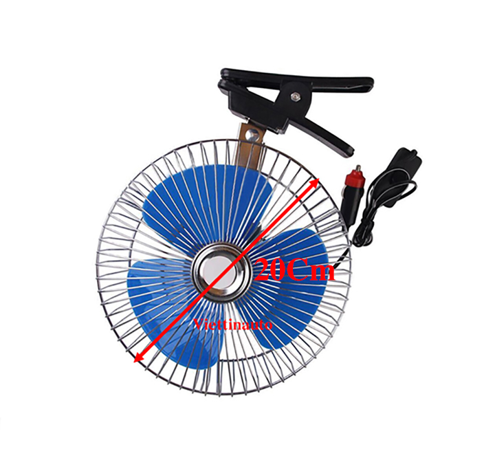 - Quạt kẹp ô tô 12v 24v xoay 360 độ có đảo chiều 8 inch 3 cánh