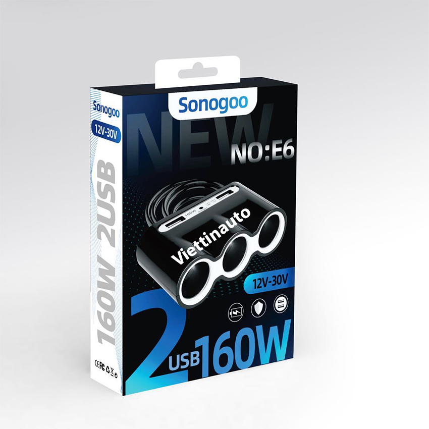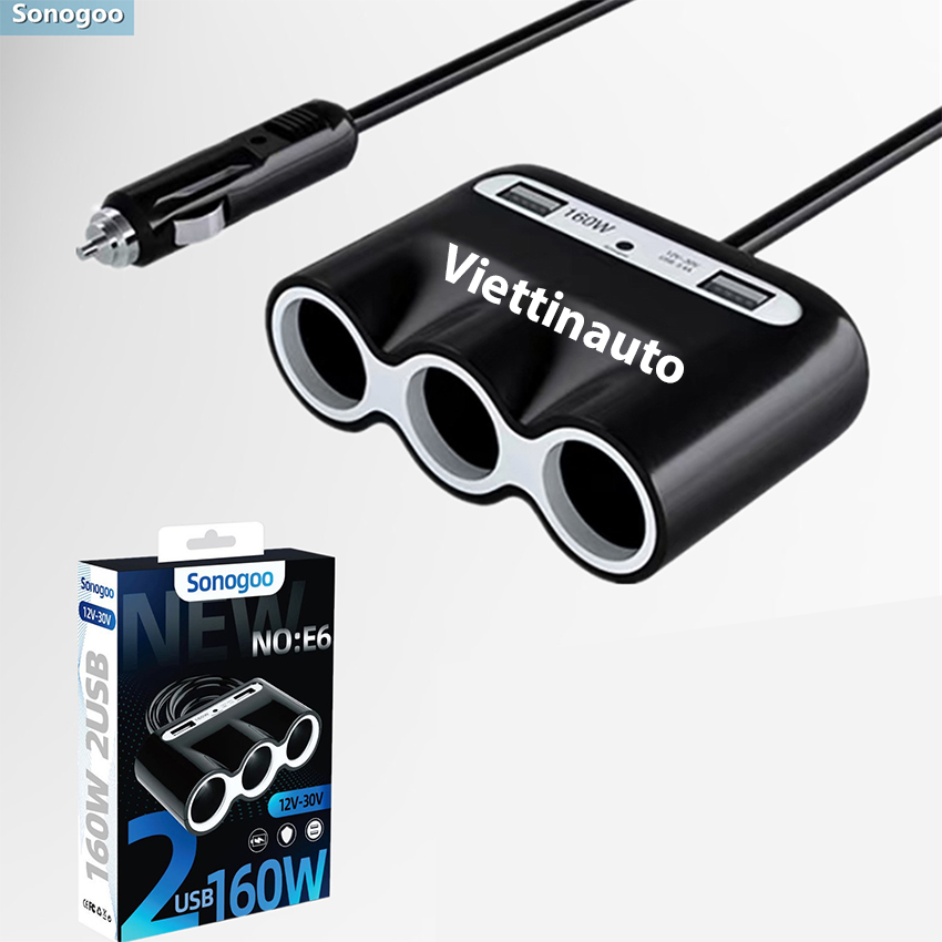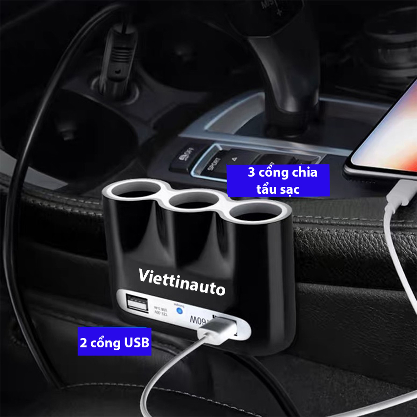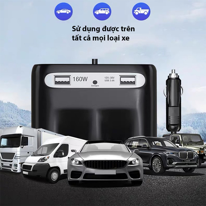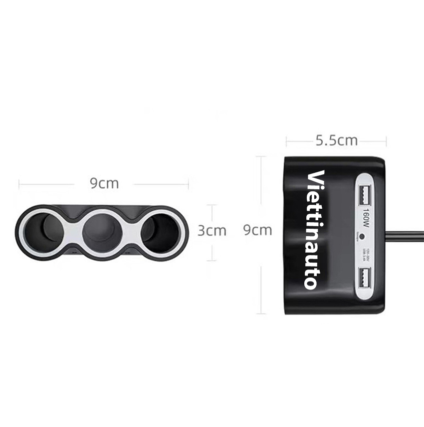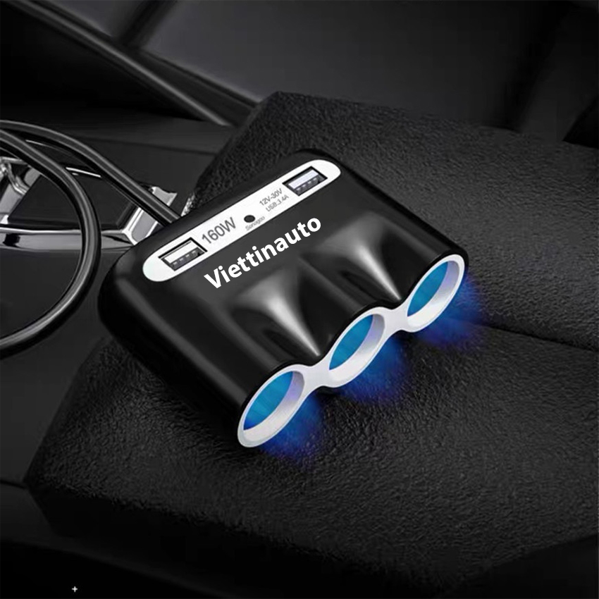 - Tẩu sạc xe hơi 3 cổng chia tẩu và 2 cổng USB sạc nhanh 160W , sạc cùng lúc cho nhiều thiết bị mà không lo thiếu chỗ cắm