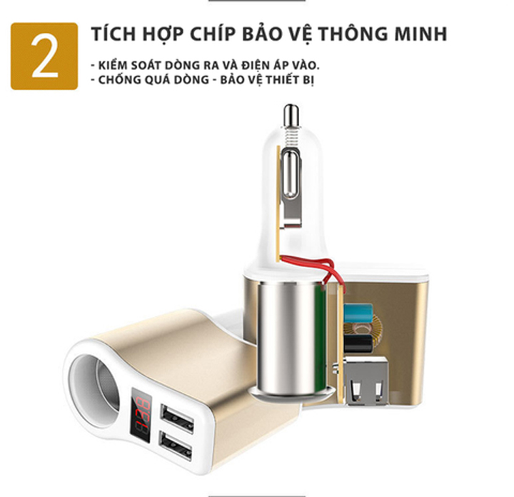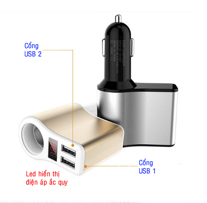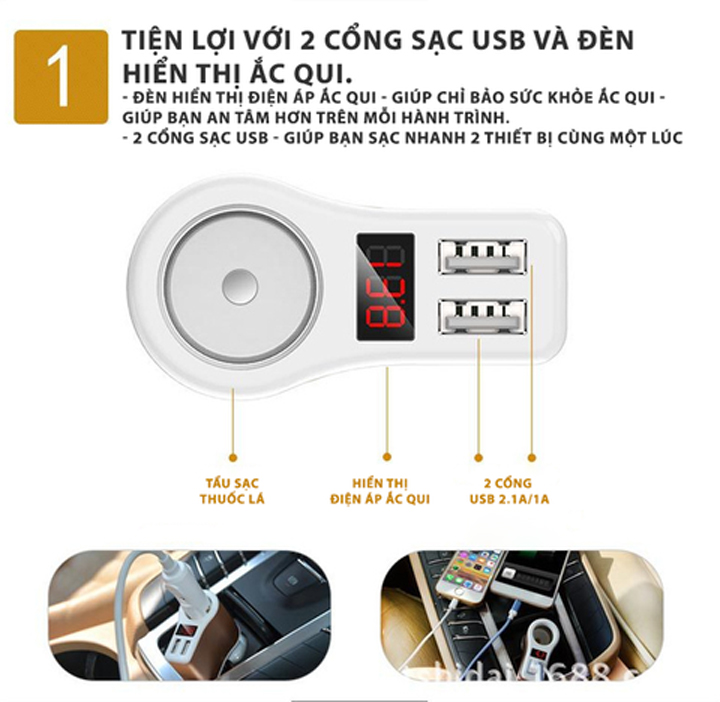 - Gồm 1 tẩu nguồn và 2 cổng usb
