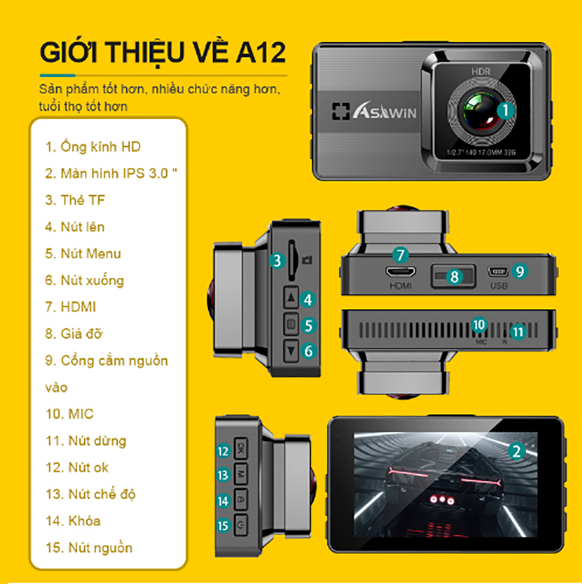 - Tầm nhìn ban đêm HD trong các môi trường khác nhau. Camera hành trình tự động điều chỉnh chế độ ghi, ngày hay đêm. Video của nó rất rõ ràng