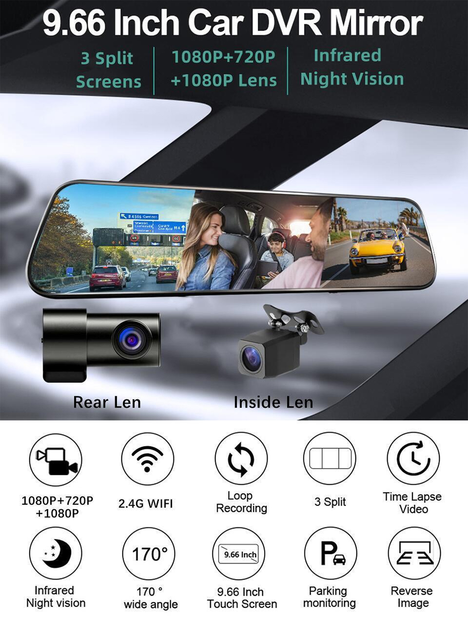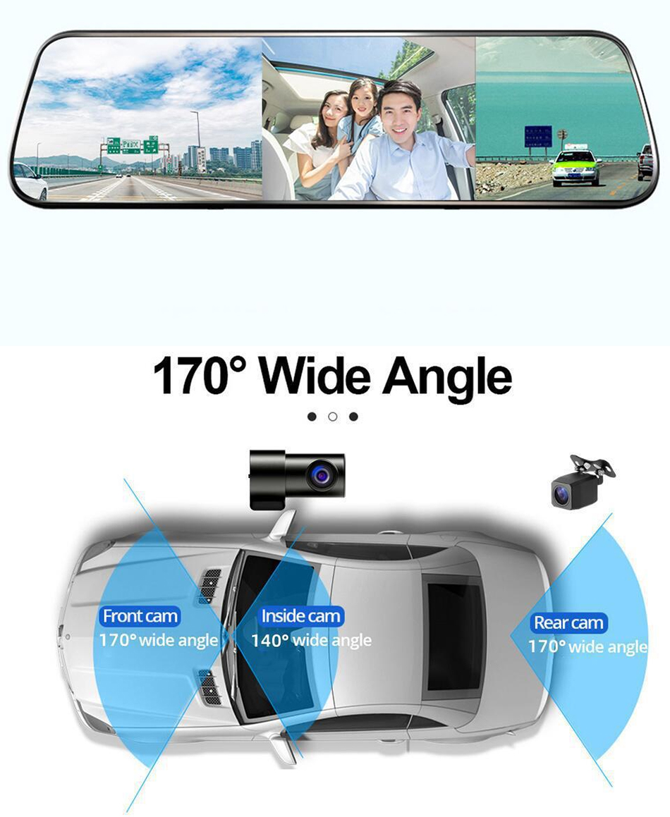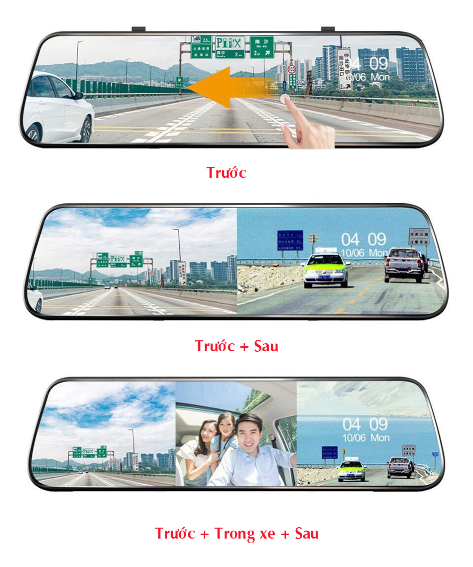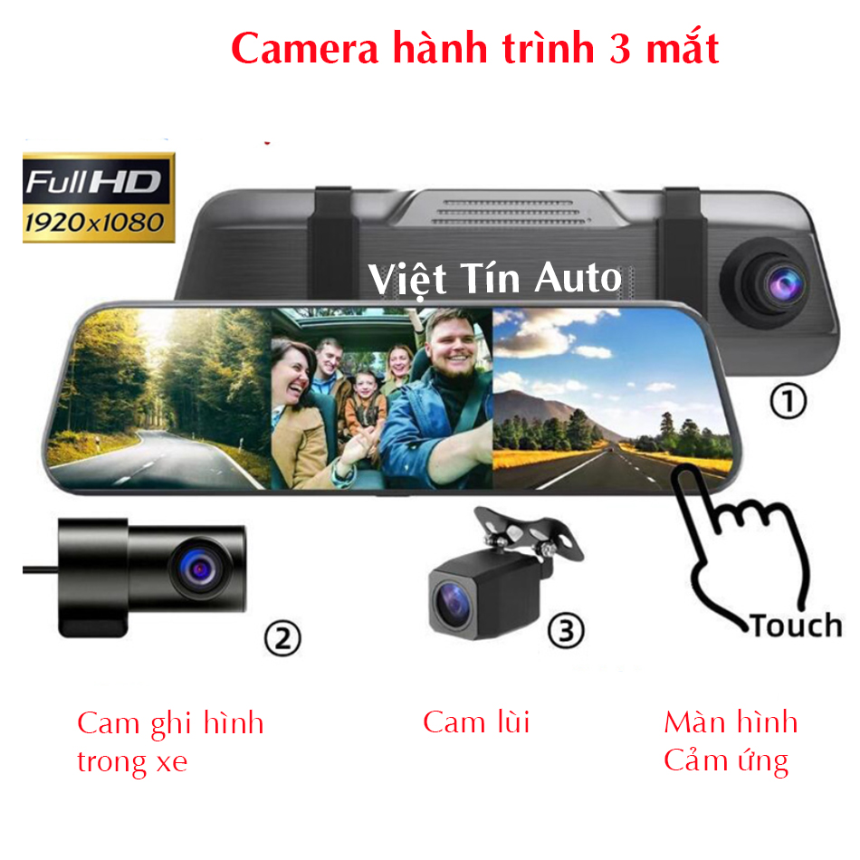 - Camera giám sát hành trình gương, Cam hành trình 3 mắt kết nối WIFI