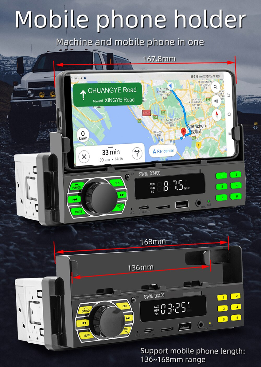 - Tên sản phẩm: Máy nghe nhạc Bluetooth, đài FM cho Ô tô, máy nghe nhạc thẻ