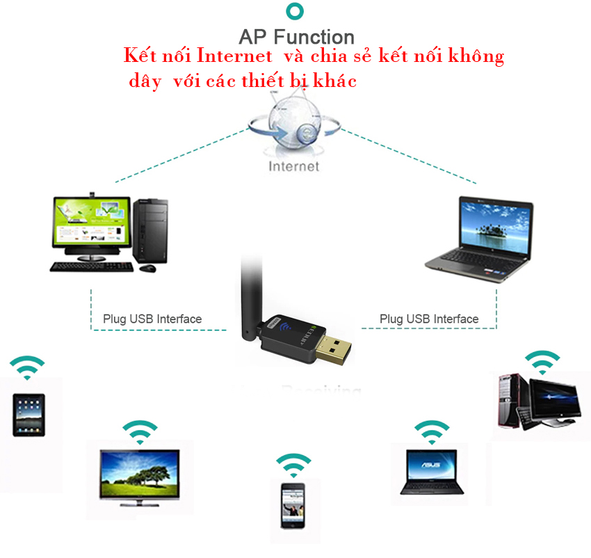 USB Anten thu sóng Wifi 150Mbps chuẩn N cho máy tính EDUP: Chia sẻ kết nối không dây dễ dàng Nhờ vào chức năng AP, thiết bị này như một điểm truy cập không dây (access point). Bằng cách này, bạn hoàn toàn có thể biến mạng có dây trong nhà thành mạng không dây để các thiết bị tương thích có thể truy cập Internet, mail, download và chi sẻ tập tin một cách dễ dàng.