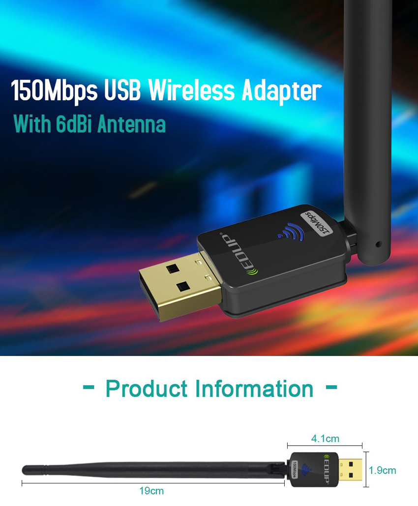USB Anten thu sóng Wifi 150Mbps chuẩn N cho máy tính EDUP : Là giải pháp mạng thông minh sẽ giúp máy tính bạn truy cập mạng Wi-Fi trong nhà để kết nốiInternet mà không cần sử dụng cáp kế nối.Thieests bị này được trang bị giao tiếp USB giúp kết nối máy tính dễ dàng. Bên cạnh đó, một ăng-ten ngoài lớn sử dụng trên thiết bị cho phép bắt sóng cực nhạy và cho khoảng cách kết nối xa, nhờ đó bạn có thể tự tin để thiết lập kết nối thông minh ngay trong nhà bạn.