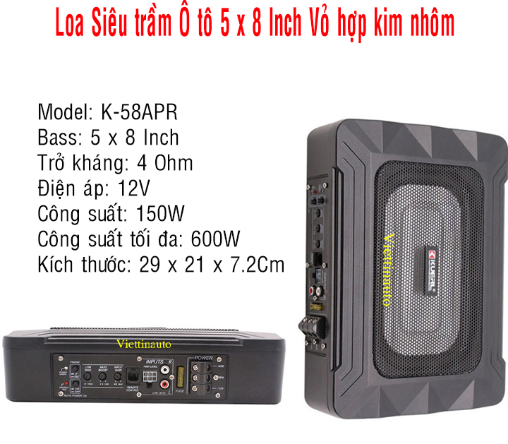 Tên sản phẩm: Loa Siêu trầm Ô tô 12V Vỏ hợp kim nhôm 5 x 8 Inch K-58APR