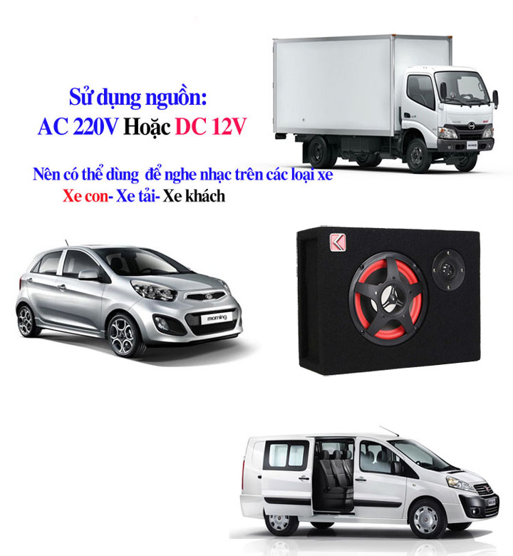 Loa nghe nhạc trên Ô tô đa năng Nguồn AC220V hoặc DC 12V - K633 sử dụng nguồn DC 12V nên có thể dùng nghe nhạc trên ô tô: Xe con, Xe tải, Xe khách với một mức chi phí vô cùng hợp lý bạn có sẽ có ngay bộ loa nghe nhạc trên xe của mình.