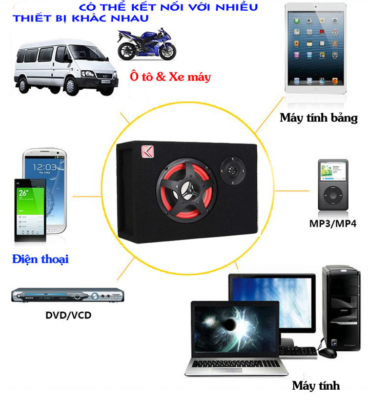 Loa nghe nhạc trên Ô tô đa năng Nguồn AC220V hoặc DC 12V: Với 2 khe cắm cho thẻ SD, MMC và 1 khe cắm USB, loa K-633 sẵn sàn cho bạn nghe nhạc bất kì đâu. Thật đơn giản, chỉ cần cắm USB hoặc thẻ nhớ vào, loa sẽ tự động nhận diện và phát nhạc ngay tức thì. Ngoài ra nếu có thêm 1 dây nối, bạn cũng có thể kết nối Loa với bất kì thiết bị phát nhạc nào có cổng 3.5"; ví dụ như máy tính bàn, máy tính xách tay, iPad, iPhone, điện thoại, máy nghe nhạc,.... Sản phẩm đã được kiểm tra và không gặp khó khăn nào khi kết nối.