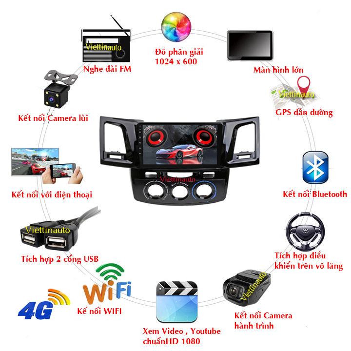 Tên sản phẩm: Màn hình Android 9 In theo xe Toyota Fortuner Toyota Hilux 2008-2014 Số Sàn