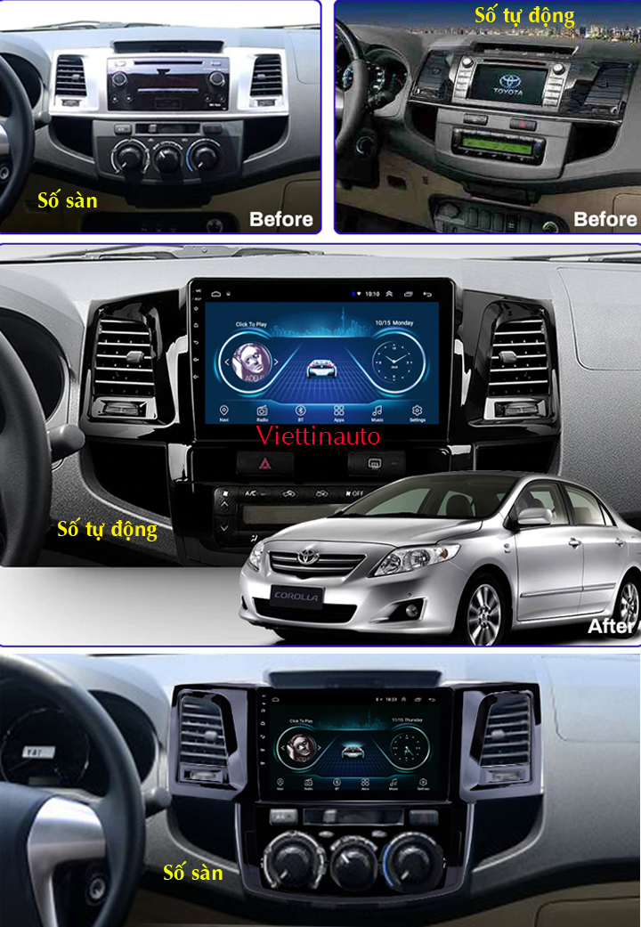 Một số hình ảnh Màn hình Android 9 In theo xe Toyota Fortuner Toyota Hilux 2008-2014 Số sàn