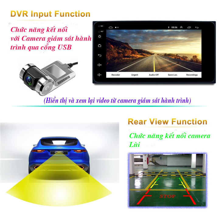 ✔️ Tích hợp cổng kết nối Camera hành trình ghi lại hình ảnh từ Camera trước và sau.