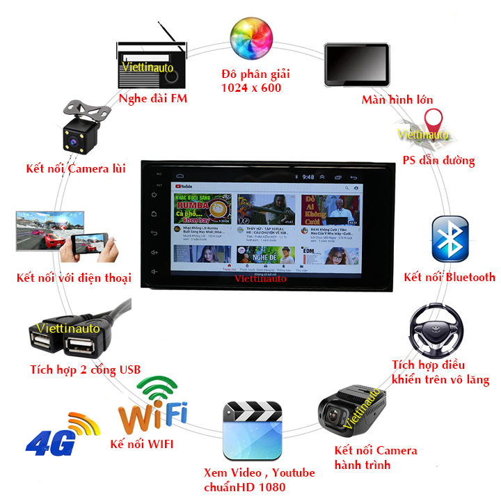 ✔️ Youtube ẩn có thể vừa nghe nhạc trực tuyến, vừa chạy các ứng dụng khác như: Phần mềm dẫn đường, hay hiển thị camera giám sát hành trình trên màn hình.
